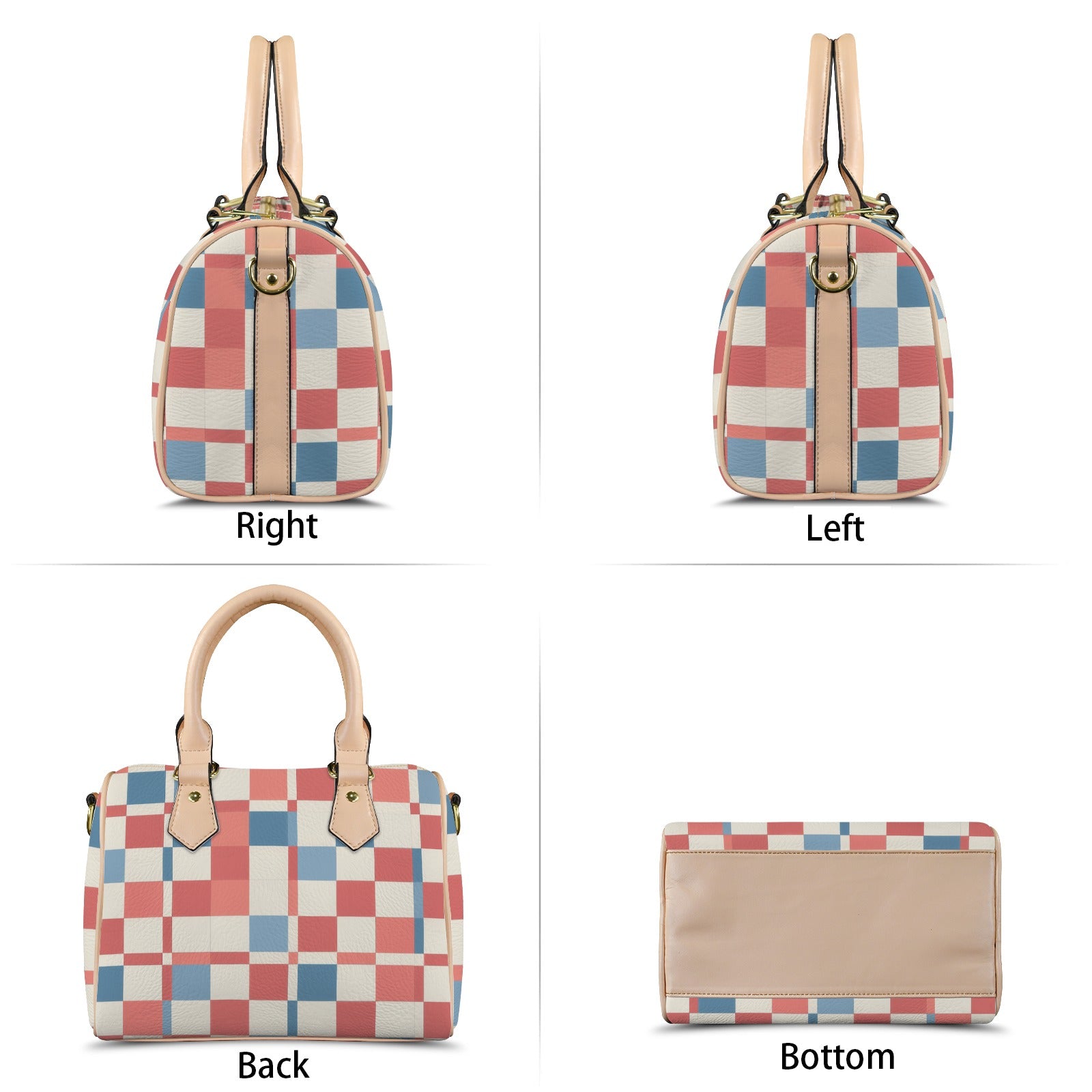 Damen Handtasche mit Karomuster und khakifarbenen Henkeln